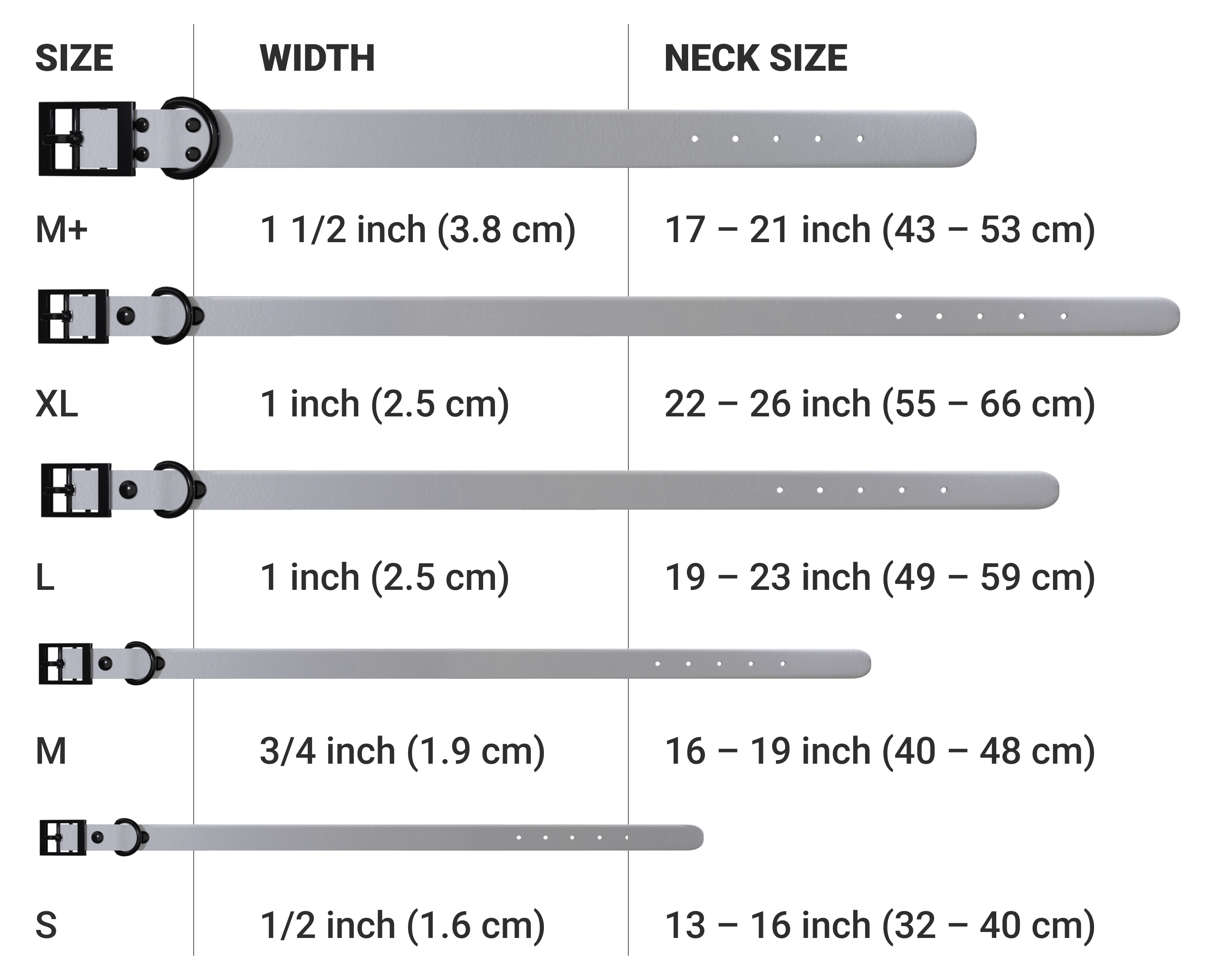 📏 Biothane Collar Size Chart
